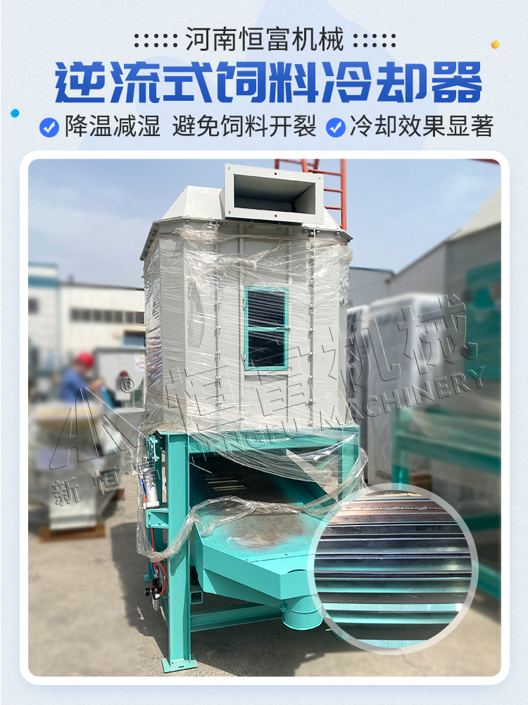 逆流式飼(sì)料冷卻器廣泛應用於(yú)飼料生產(chǎn)中的冷卻工段,對顆粒飼料的質量具有顯(xiǎn)著的影響,是加工(gōng)顆粒飼料、膨化飼料、水產飼料(liào)等顆粒飼料(liào)不可缺少的設備。