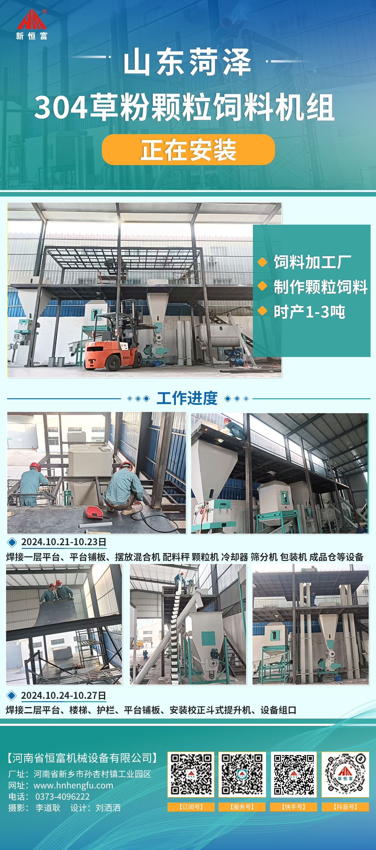 河南恒(héng)富機(jī)械-成套(tào)飼料加(jiā)工設備安裝進度【2024-10-22】