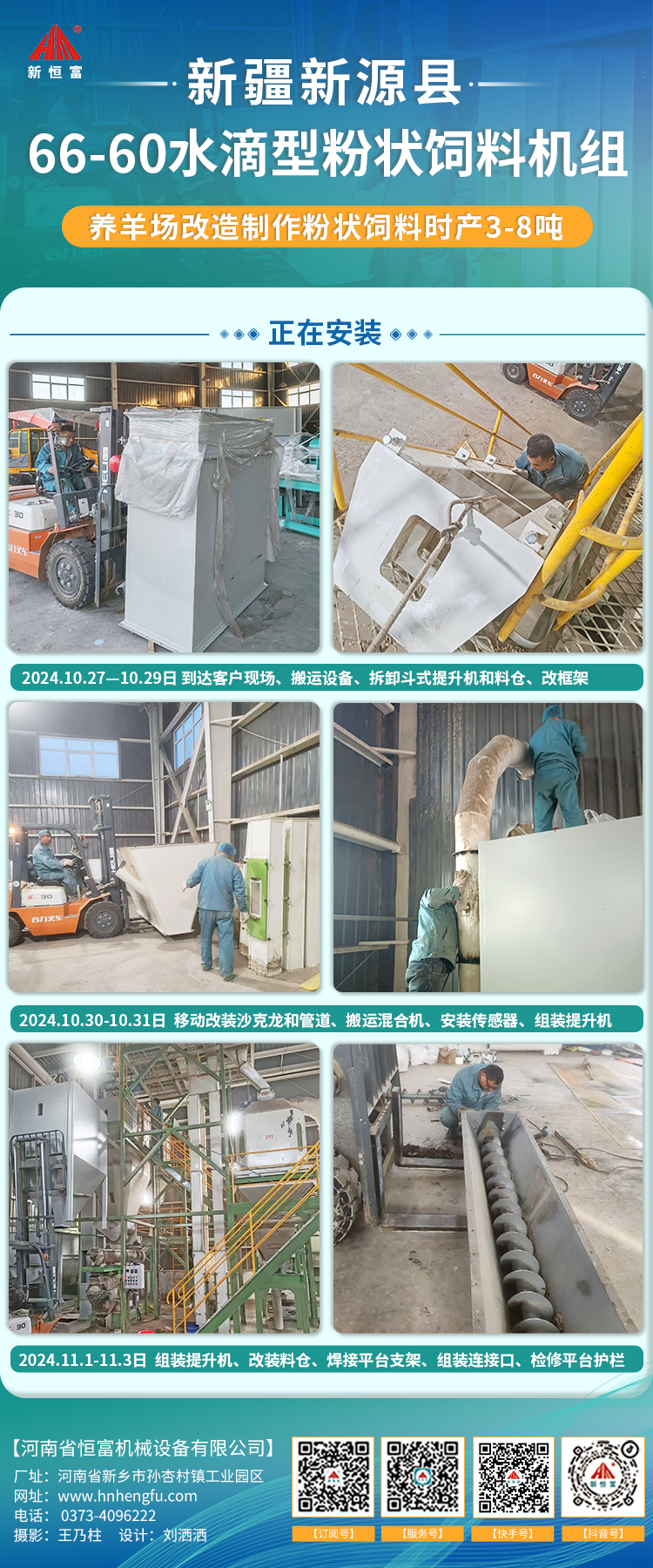 河南恒富機械-成套飼料加工(gōng)設備安裝進度【2024-10-22】