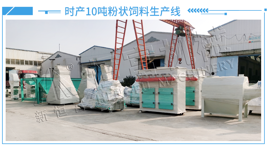 本條生產線(xiàn)是雙線粉(fěn)狀飼料加工機組,采用了2台水滴型飼料粉碎機。
