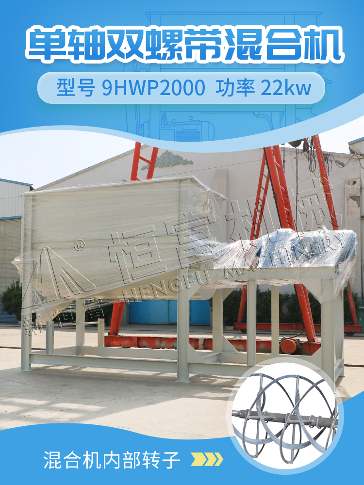 混合均勻度(dù)高CV≤7%、混合時間短3-6分鍾。用於混合按比例計量後的各種粉料,預混料和全價料。