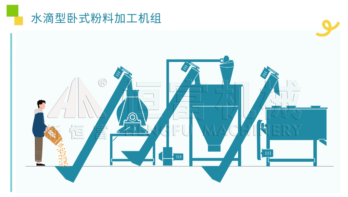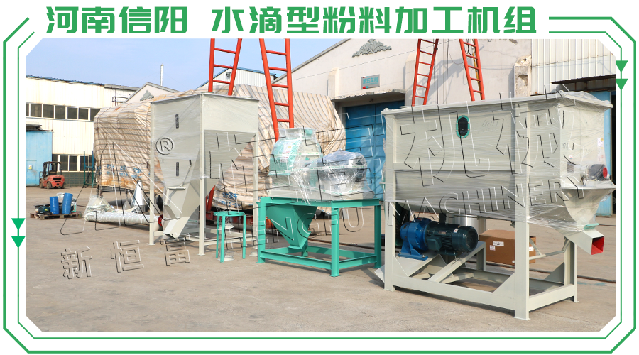 該機組搭配的設備有水滴式飼料粉(fěn)碎機、臥式螺帶飼(sì)料混合(hé)機、中間配有獨立緩衝倉。可以使飼料粉碎機和飼(sì)料混合機(jī)始終處於一個連續高效工作的狀態,進一步(bù)提高生產效率。