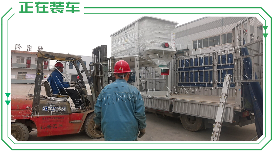 內蒙古赤峰市巴林左(zuǒ)旗--時產3-5噸粉狀飼料加工(gōng)機組,已裝車完(wán)成,順利發走!