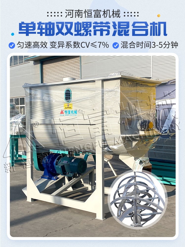 主要功能是高效混合物料。它由(yóu)U形殼體、螺帶攪拌葉片和傳動部件組(zǔ)成,螺(luó)帶(dài)狀葉片采用雙層內外結(jié)構。