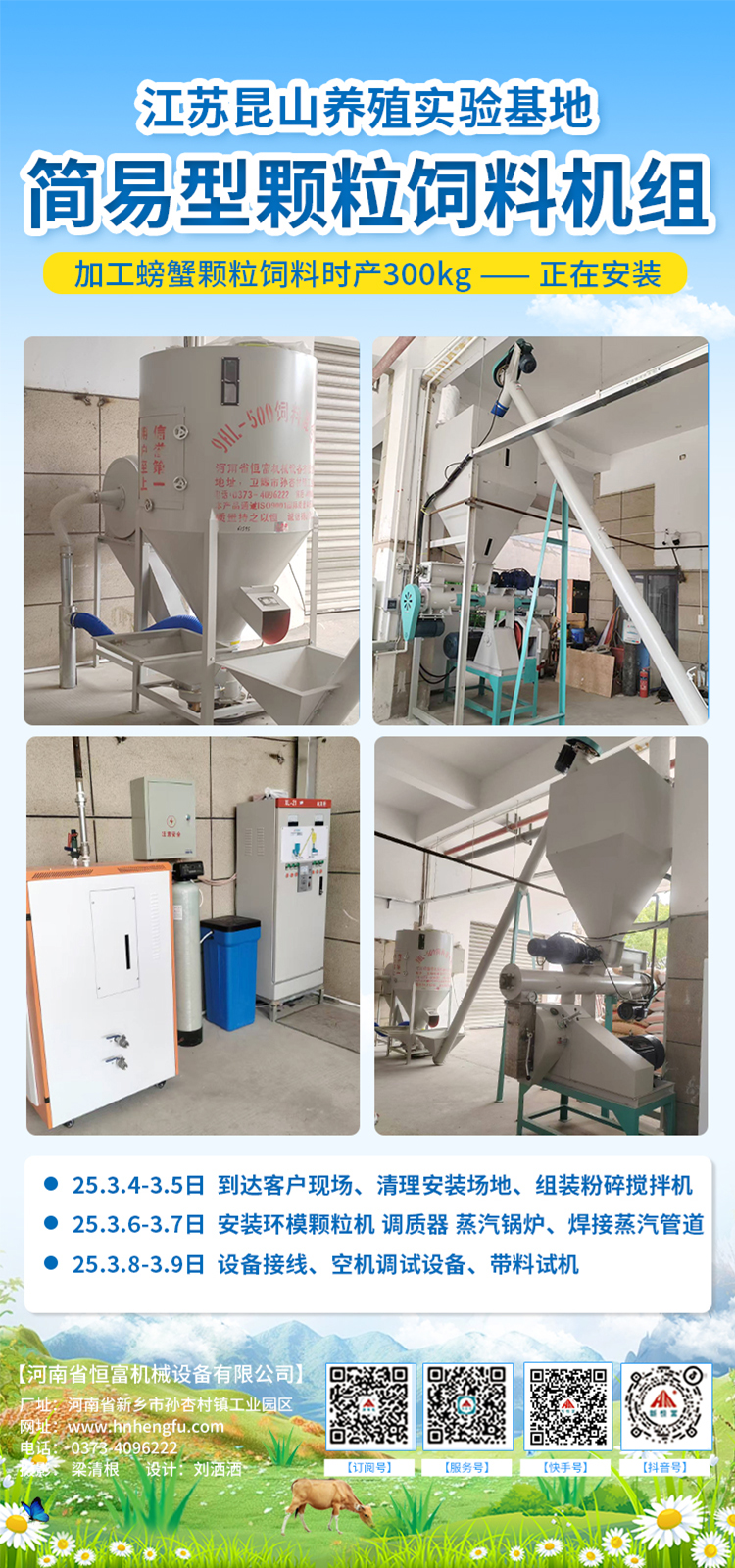 江蘇昆山螃蟹研究實驗基地,時(shí)產300公斤螃蟹下沉顆粒飼料生產線正(zhèng)在安裝(zhuāng)。
